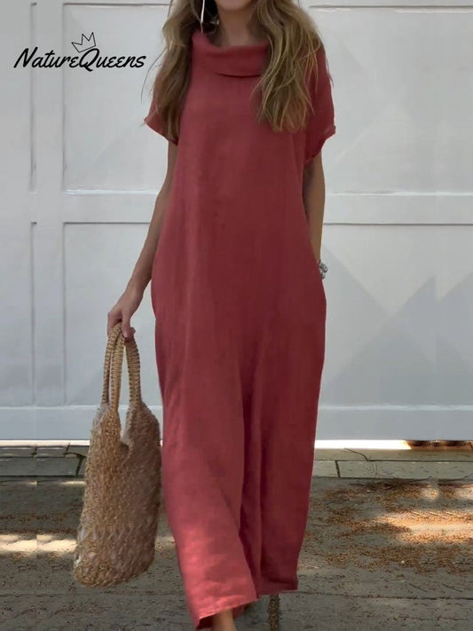 Women's Turndown Collar Linen Pocket Dress