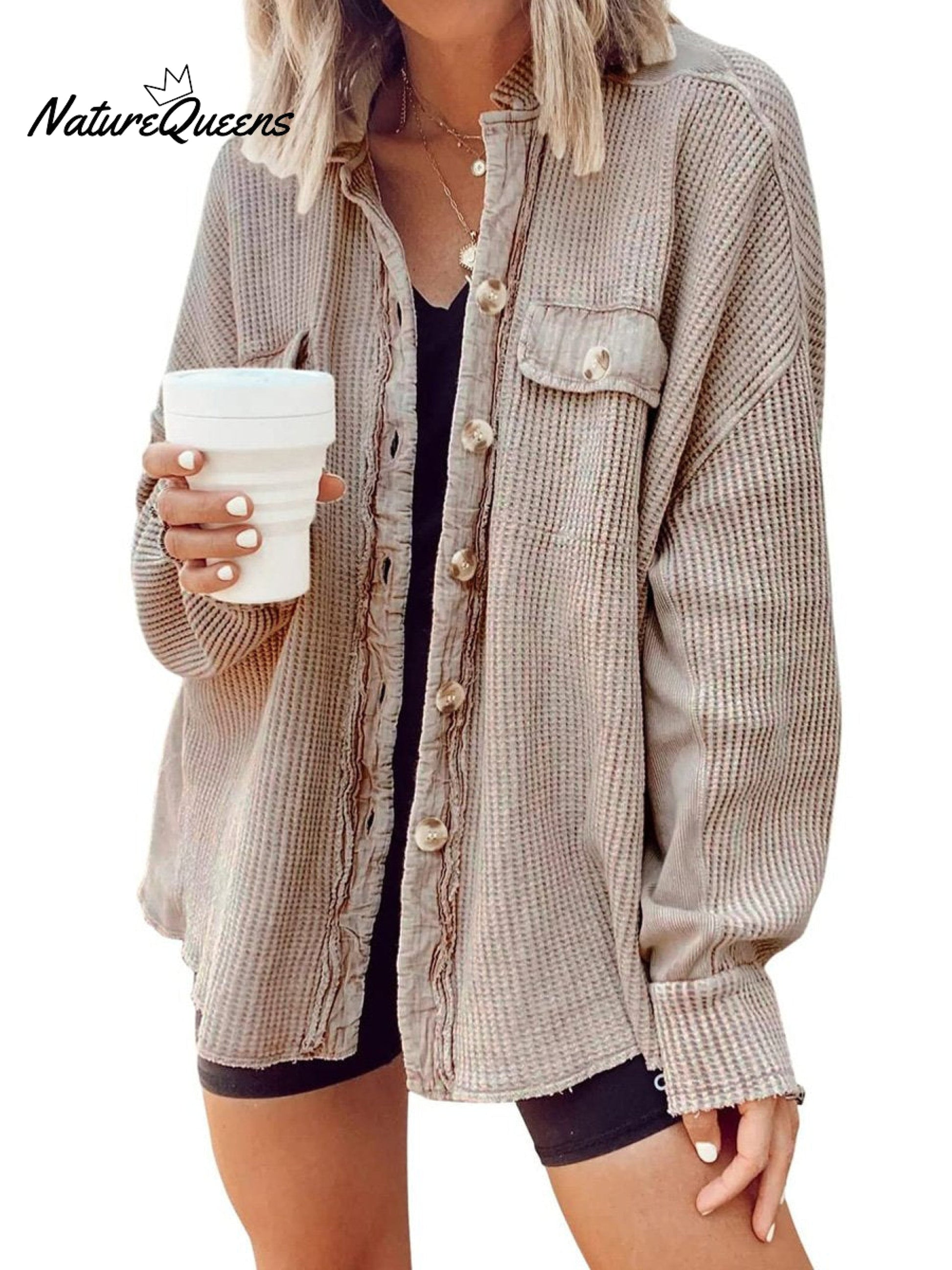 Women's Fall Casual Lapel Neck Patchwork Irregular Shirt Jacket
