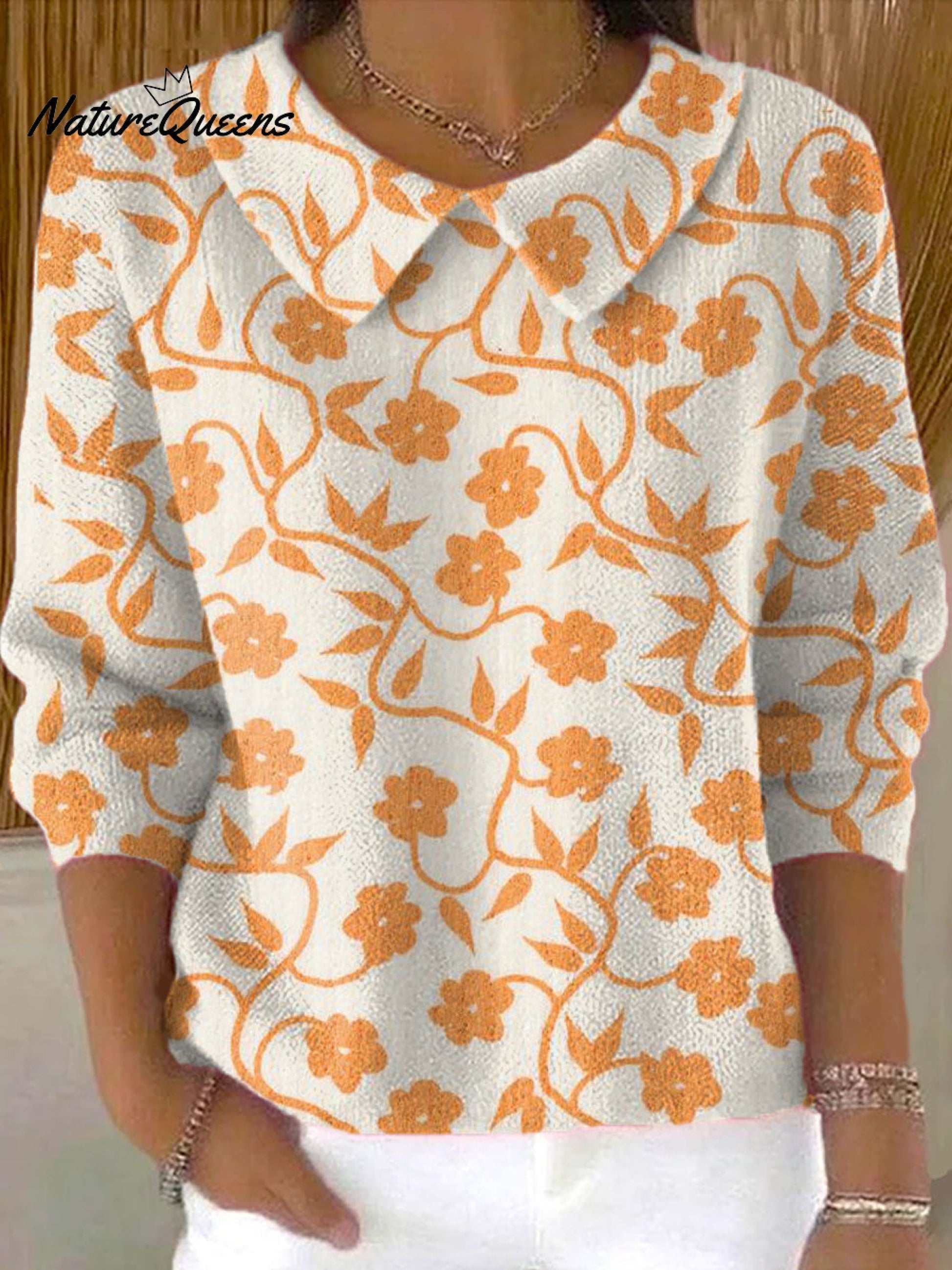 Women's Vintage  Flower Art Print Casual Peter Pan Collar 3/4 Sleeve Sweater